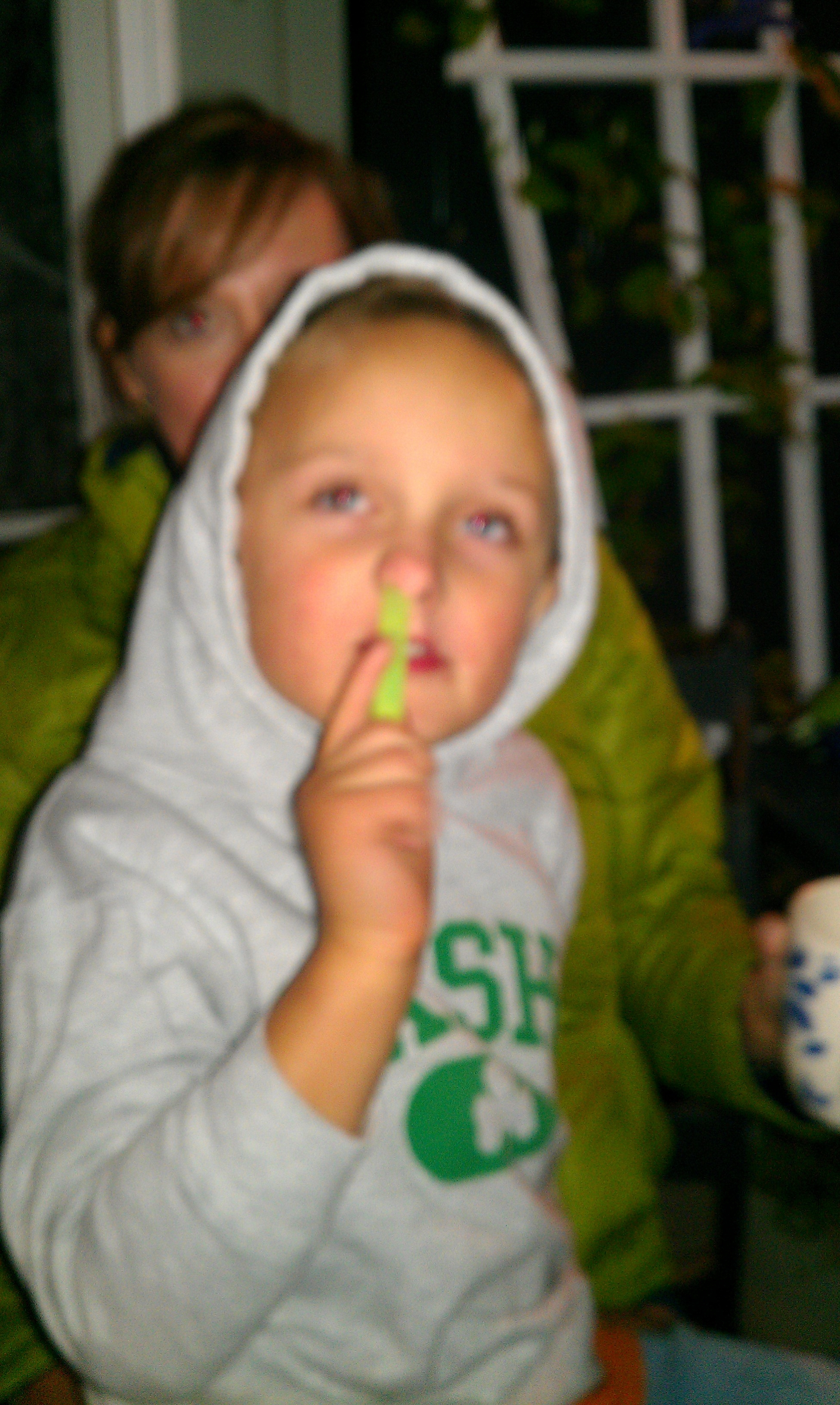 Indeed. Sometimes safety is relative. In the above case, it was comparatively safer for Michael to play on the ladder and risk falling (from a rather low height, mind you) than continue playing with the extension cord and risk strangulation AND electrocution. You have to give your kids something now and again…like letting your son shove a glow stick up his nose because you’re just glad that this time it isn’t a Fuse Bead which gets stuck and results in a trip to urgent care.