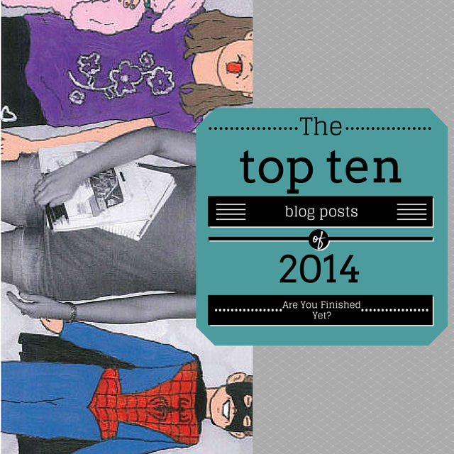 Here is a quick look at the top ten posts of 2014 on Are You Finished Yet?…the ones that garnered the most views. A few are actually from earlier years. Some would say this means my writing has “staying power.” I say it mostly has to do with tagging them with keywords that land them in frequent and weird Google searches. Either way, it’s nice to see some of my favorites seem to have a pretty nice shelf life.